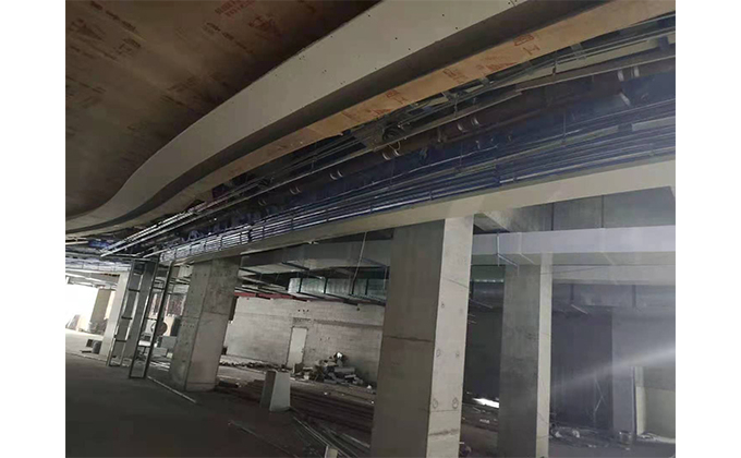 擋煙垂簾垂壁根據設計要求和現場實際情況采取如下施工順序:首先,搭設腳手架一放線一打眼--上脹栓一焊骨架。第二,吊件一安裝骨架…